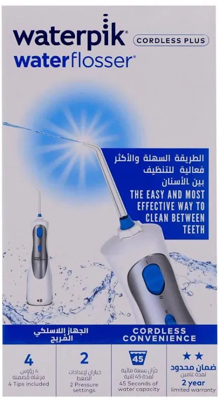 Rechargeable and portable, the Cordless Plus offers 45 seconds of flossing time and is perfect for use in smaller bathrooms or for travel.